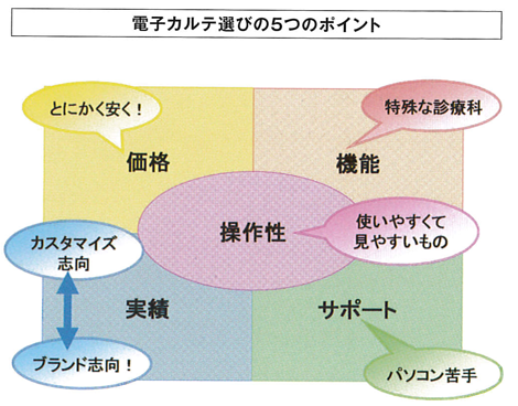 ※引用元:診療所の電子カルテ バイヤーズガイド2009[電子カルテ選びの5つのポイント]