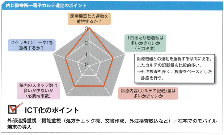 ![]() ※引用元:診療所の電子カルテ バイヤーズガイド2009[診療科別のIT導入のポイント:内科] |