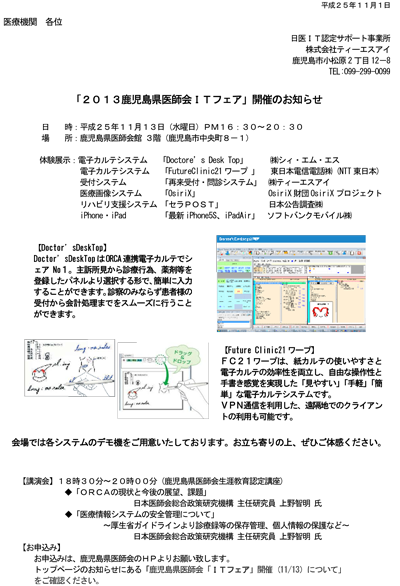 「2013鹿児島県医師会ITフェア」開催のお知らせ