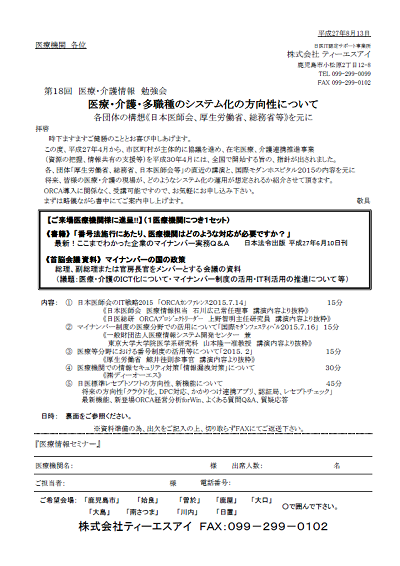 第18回 医療・介護情報 勉強会 「 医療・介護・多職種のシステム化の方向性について 」